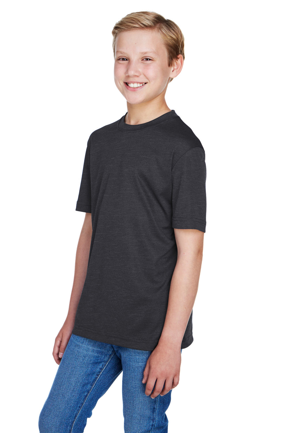 Team 365 Youth Sonic Performance Heather Moisture Wicking Short Sleeve Crewneck T-Shirt - Heather Black