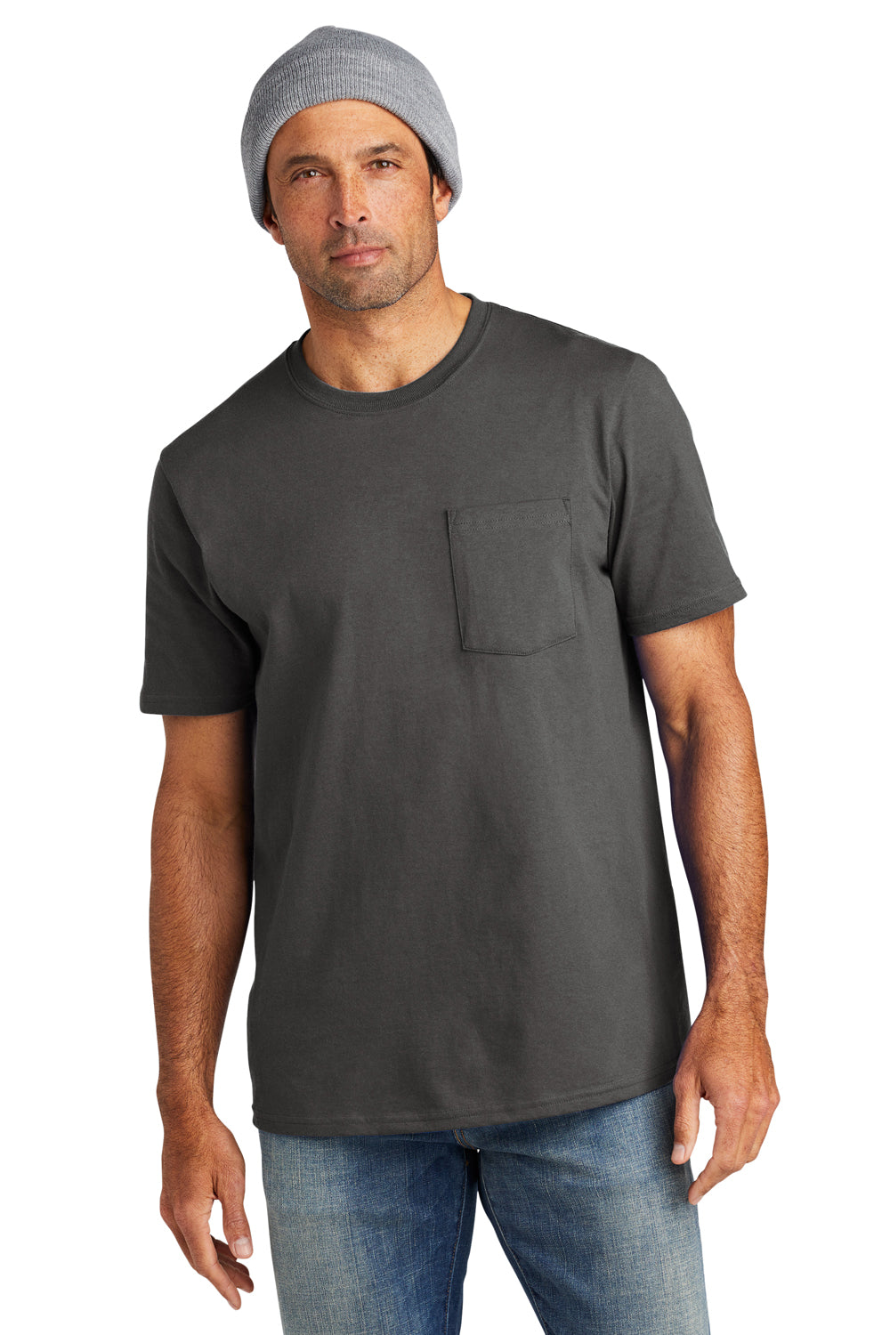 Volunteer Knitwear Mens USA Made All American Short Sleeve Crewneck T-Shirt w/ Pocket - Steel Grey